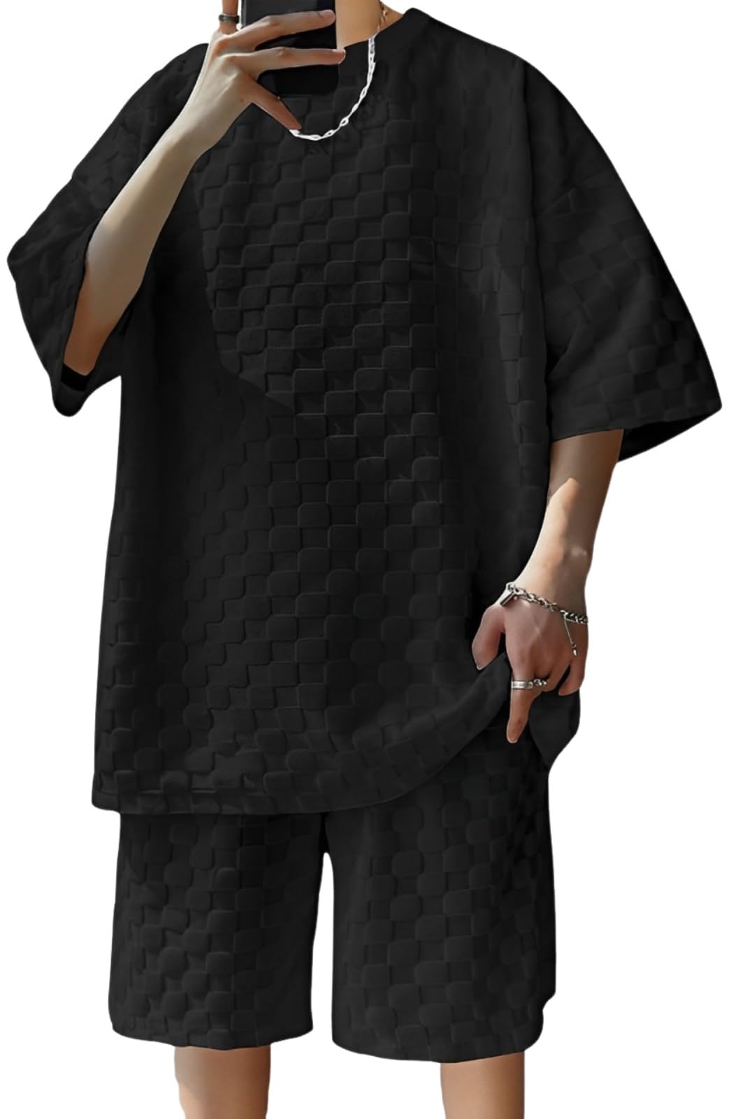 【送料無料】[aspersio] [アスペルシオ] オシャレ セットアップ 上下 半袖 ハーフパンツ b系 ジャージ カジュアルウェア メンズ 色:カカオブラック、サイズ:2XL