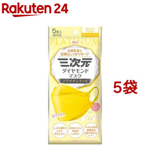【5個セット】 興和 三次元ダイヤモンドマスク プラチナシリーズ カナリアイエロー フリーサイズ 5枚入×5個セット 【正規品】 コーワ