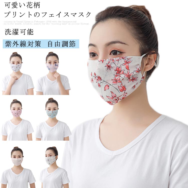苦しくない フェイスマスク マスク サラサラ 春用 夏用 涼しい ふんわり やさしい肌触り 柔らかい 洗えるマスク フェイスカバー 婦人マスク ゴム紐 調節可能 日焼け防止 UV対策 春夏 花柄 女性用 自転車 送料無料