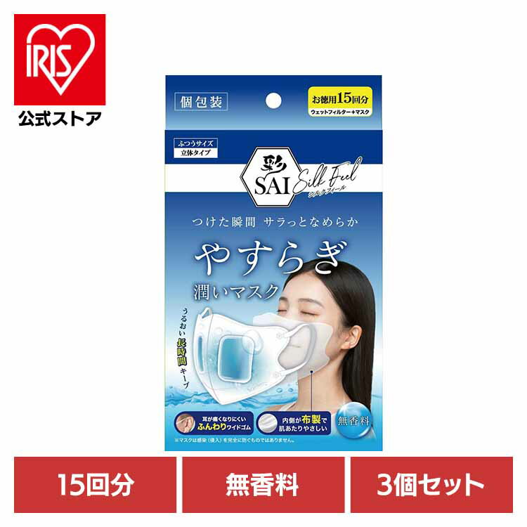 【3個セット】彩 やすらぎ潤いマスク 無香料 15回分 衛生用品 マスク やすらぎ潤いマスク サラッとなめらか 水分たっぷり 乾燥対策 花粉 風邪 予防 対策 日翔株式会社 !!-q 【B】