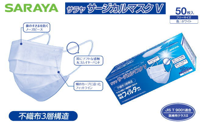 サージカルマスク サラヤ サージカルマスクV JIS T 9001 医療用マスククラス2【コロナ対策・インフルエンザ対策・医療従事者・介護従事者・感染症対策用品】
