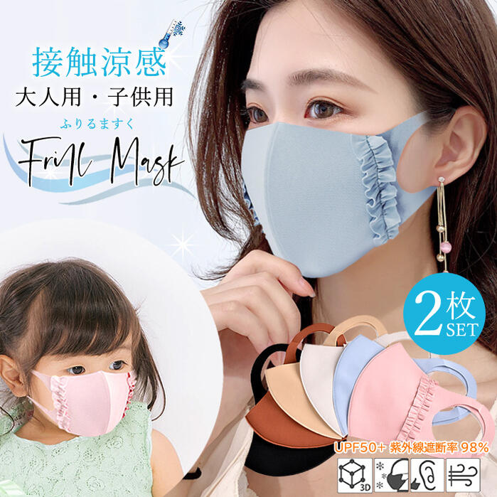 さらさら フリルマスク 2枚入り 立体 フリルマスク 洗えるマスク おしゃれ リボン 涼感 マスク サラサラ レディース こども 子供用 大人用 フィット 立体マスク 幼児マスク 繰り返し使える キッズ 3歳 4歳 5歳 伸びるフリル2枚