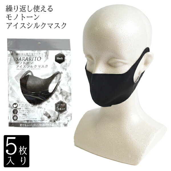 【マスク 5枚入り】モノトーンアイスシルクマスク SARARITO ブラック サラサラ 伸縮 吸水速乾 通気 繰り返し 洗える 気持ちいい ひんやり 立体 マスク 3D 冷感触 冷感 接触冷感 予防 感染予防 快適 夏用 水洗い クール 高弾性 男女兼用 大人用【13時までの注文で当日発送】