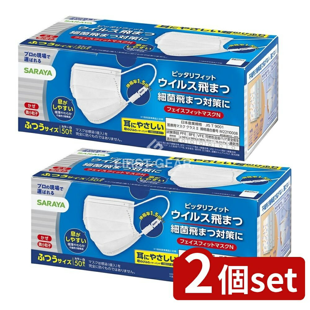 \レビュー特典有/【2個セット】 サラヤ フェイスフィットマスクふつう [単品内容量/50枚] | マスク 不織布マスク 使い捨てマスク フェイスマスク サラヤマスク 普通サイズ 不織布 3層構造 白マスク 使い捨て 耳が痛くない 苦しくない 耳紐太め 飛沫対策 メンズ