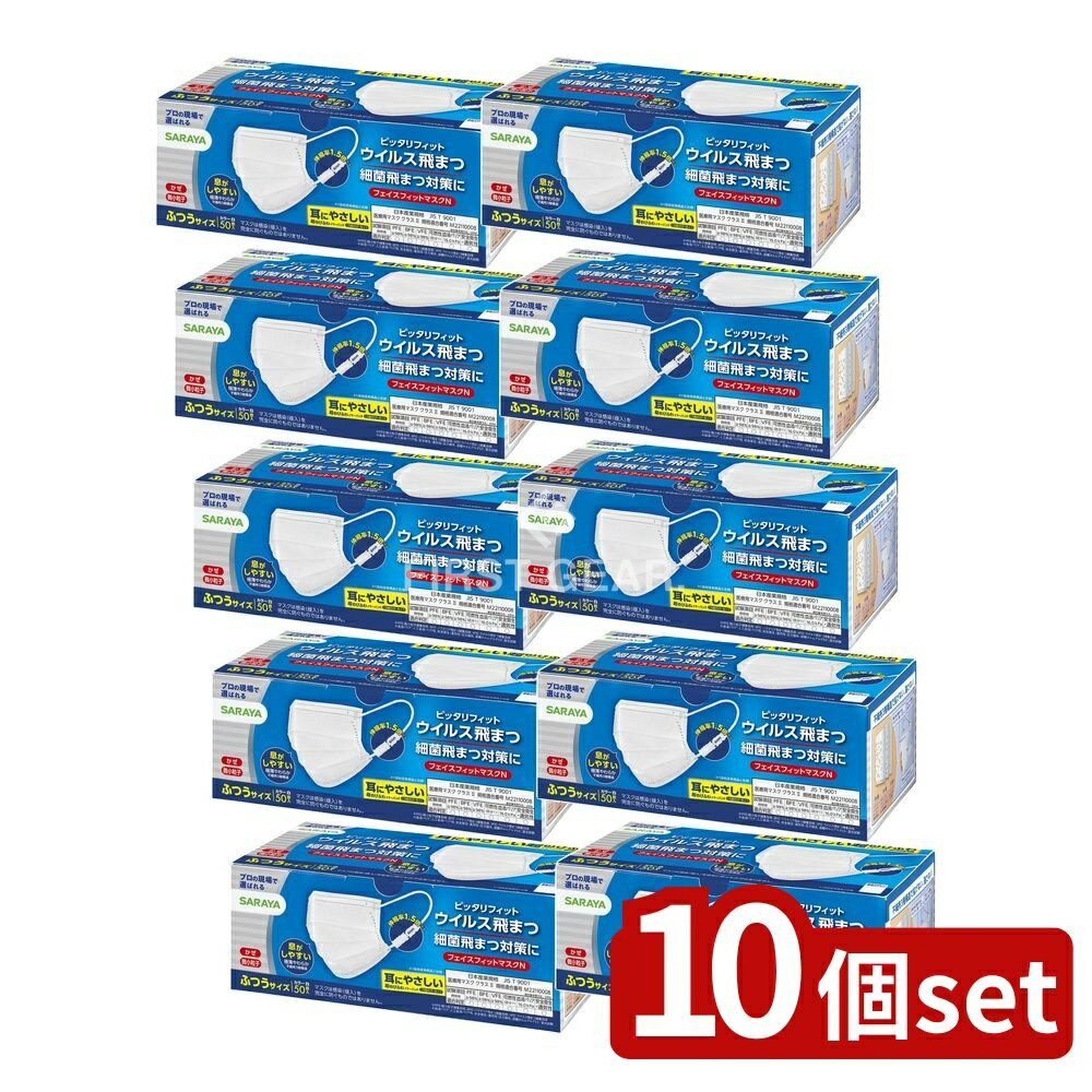 \レビュー特典有/【10個セット】 サラヤ フェイスフィットマスクふつう [単品内容量/50枚] | マスク 不織布マスク 使い捨てマスク フェイスマスク サラヤマスク 普通サイズ 不織布 3層構造 白マスク 使い捨て 耳が痛くない 苦しくない 耳紐太め 飛沫対策 メンズ