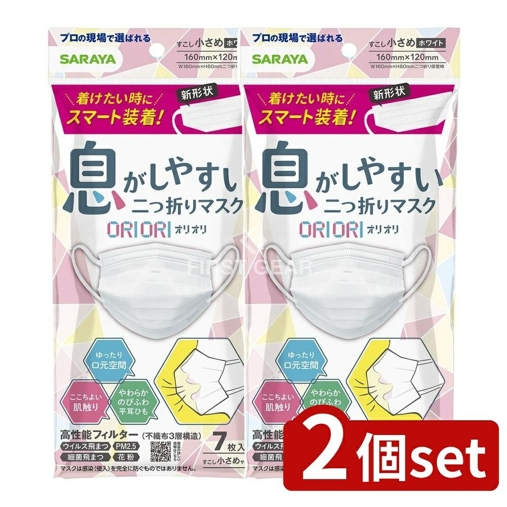 \レビュー特典有/【2個セット】 サラヤ 二つ折りマスクORIORI すこし小さめ [単品内容量/7枚] | サラヤ マスク 二つ折りマスク オリオリ 不織布マスク 立体マスク 小さめマスク 使い捨てマスク 平耳ひも ノーズワイヤー マスク3層構造 口元空間