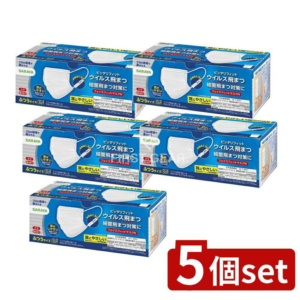 \レビュー特典有/【5個セット】 サラヤ フェイスフィットマスクふつう [単品内容量/50枚] | マスク 不織布マスク 使い捨てマスク フェイスマスク サラヤマスク 普通サイズ 不織布 3層構造 白マスク 使い捨て 耳が痛くない 苦しくない 耳紐太め 飛沫対策 メンズ