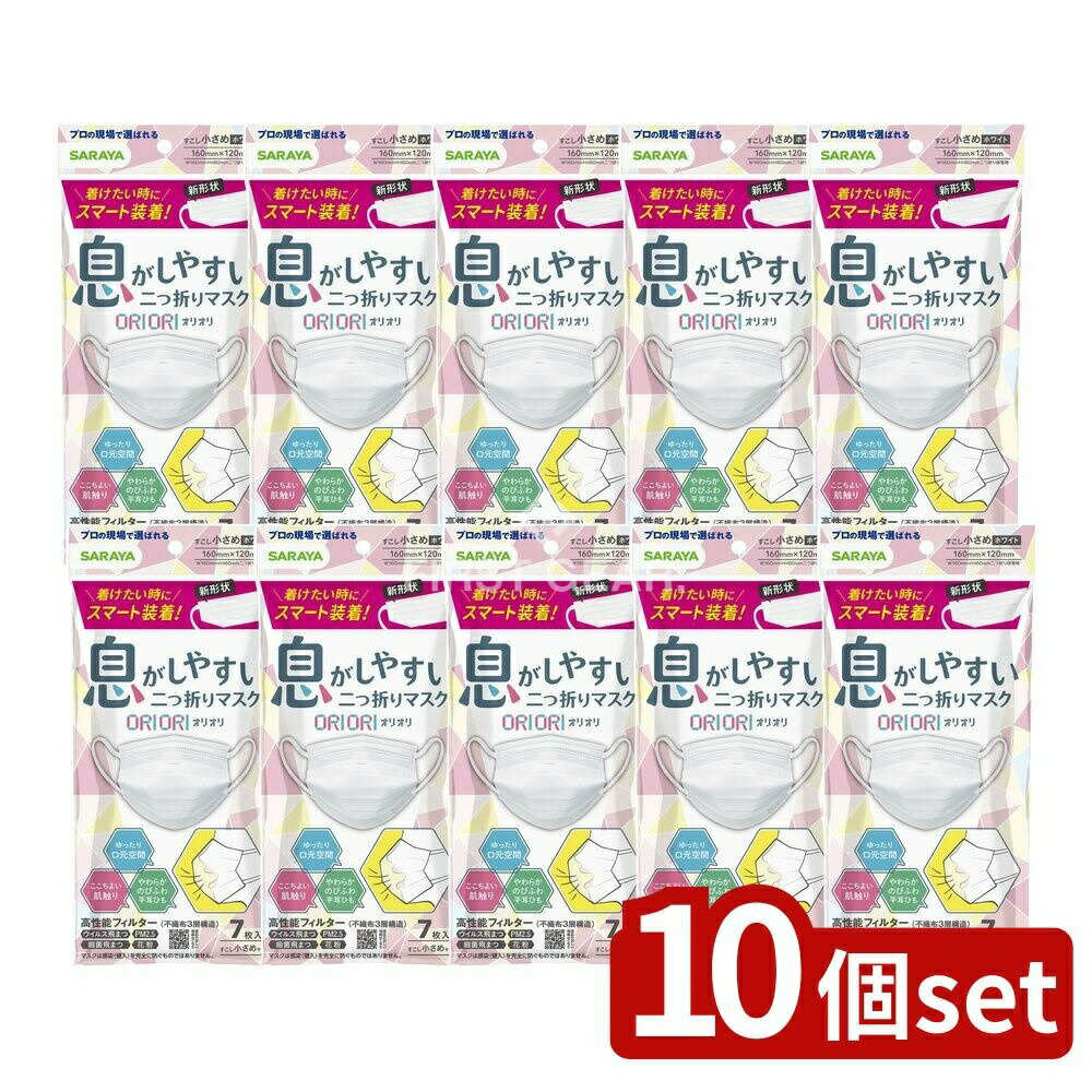 \レビュー特典有/【10個セット】 サラヤ 二つ折りマスクORIORI すこし小さめ [単品内容量/7枚] | サラヤ マスク 二つ折りマスク オリオリ 不織布マスク 立体マスク 小さめマスク 使い捨てマスク 平耳ひも ノーズワイヤー マスク3層構造 口元空間