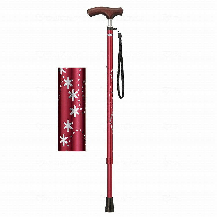 ・雪や星の模様、ストーンがキラキラ光る『キララ・ケイン』 グリップの根元が細く、握りやすいのも特徴です。 ●サイズ/ 全長66〜86cm(11段階/2.0cm) グリップ幅:11.8cm パイプ径:(手元)19mm、(杖先)16mm ●重さ/260g(宝石柄紫のみ250g) ●材質/ 支柱:アルミ グリップ:天然木 ストラップ:ナイロン ●SGマーク取得商品 ●カラー/ 雪柄黒 雪柄金 雪柄赤 星柄黒 星柄金 星柄赤 宝石柄紫 ●メーカー品番/ 雪柄黒:MRZ-17001 雪柄金:MRZ-17002 雪柄赤:MRZ-17003 星柄黒:MRZ-17004 星柄金:MRZ-17005 星柄赤:MRZ-17006 宝石柄紫:MRZ-17007 ●JANコード/ 雪柄黒:4536697102001 雪柄金:4536697102018 雪柄赤:4536697102025 星柄黒:4536697102032 星柄金:4536697102049 星柄赤:4536697102056 宝石柄紫:4536697102063 ●メーカー名/ミキ