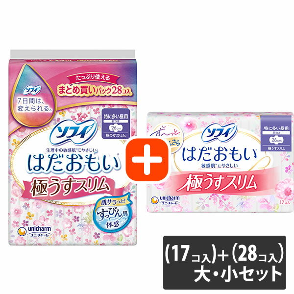 ユニ・チャーム ソフィ はだおもい 極うすスリム 特に多い昼用 羽つき 26cm 大・小セット商品 (17コ入)+(28コ入)【今ならシルコットウェットプレゼント】