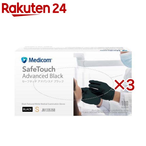 お店TOP>衛生医療>看護・医療用品>手袋(グローブ)>合成ゴム手袋(グローブ)>セーフタッチ アドバンスド ブラック M (100枚入×3セット)商品区分:一般医療機器(28B3X00001000064)【セーフタッチ アドバンスド ブラック Mの商品詳細】●強度に優れる合成ゴム(ニトリルゴム)製で、長時間の着用でも疲れない、しなやかなグローブです。●歯とのコントラストが明瞭なため術野を際立たせ、ライトの光をほとんど反射しない色(ブラック)なので、診療がしやすくなります。●光の乱反射がない色(ブラック)なので、画像生成の邪魔をせず、IOS(口腔内光学スキャン)の精度の向上につながります。●アレルギーの原因となるラテックスプロテインおよびパウダー不使用で、天然ゴム特有のゴム臭もありません。販売名:セーフタッチ アドバンスド ブラック【規格概要】・掌部幅:約95mm・全長:240mm以上・掌部厚み:0.05mm以上・指先厚み:0.05mm以上・カラー:ブラック・製造:タイ【原産国】タイ【発売元、製造元、輸入元又は販売元】A.R.メディコム・インク・アジア・リミテッド※説明文は単品の内容です。リニューアルに伴い、パッケージ・内容等予告なく変更する場合がございます。予めご了承ください。・単品JAN:4894476035590A.R.メディコム・インク・アジア・リミテッド兵庫県神戸市中央区栄町通1丁目2-10 読売神戸ビル9F078-327-2333広告文責:楽天グループ株式会社電話:050-5577-5042[介護用衛生用品]