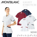 MJ500 ジャケット スクラブ 住商モンブラン 半袖 レディース ストレッチ 制菌加工 制電機能 透け防止 防汚 ウエストループ スナップボタン ダブルポケット サイドベンツ ライトストレッチ