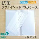 抗菌ダブルポケットマスクケース 【選べる2枚セット】 日本製 国産 SIAA 持ち運び 持ち歩き 仮置き 清潔 衛生 収納 ホワイト 白 ブラック 黒 【送料無料】