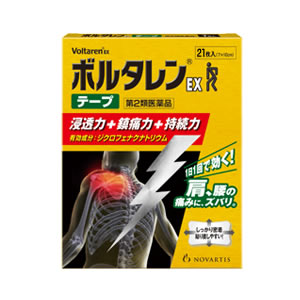 【ゆうパケット配送対象】【第2類医薬品】ボルタレンEXテープ 21枚入(筋肉痛 肩こり 腰痛 関節痛 腱鞘炎 肘の痛み テニス肘 打撲 捻挫)【SM】(ポスト投函 追跡ありメール便)