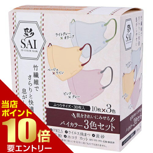 \店内全品ポイント10倍/※要エントリー彩 SAI 立体バイカラーマスク 30枚 ふつうサイズフェイスラインを引き締めるバイカラーデザインで自然な小顔効果