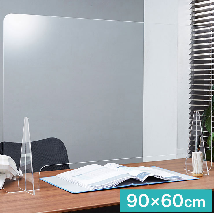 飛沫防止 パーテーション 90×60cm アクリルパーテーション クリア 間仕切り 仕切り自立 透明 衝立 スタンド2個付 飛沫 予防(代引不可)【送料無料】