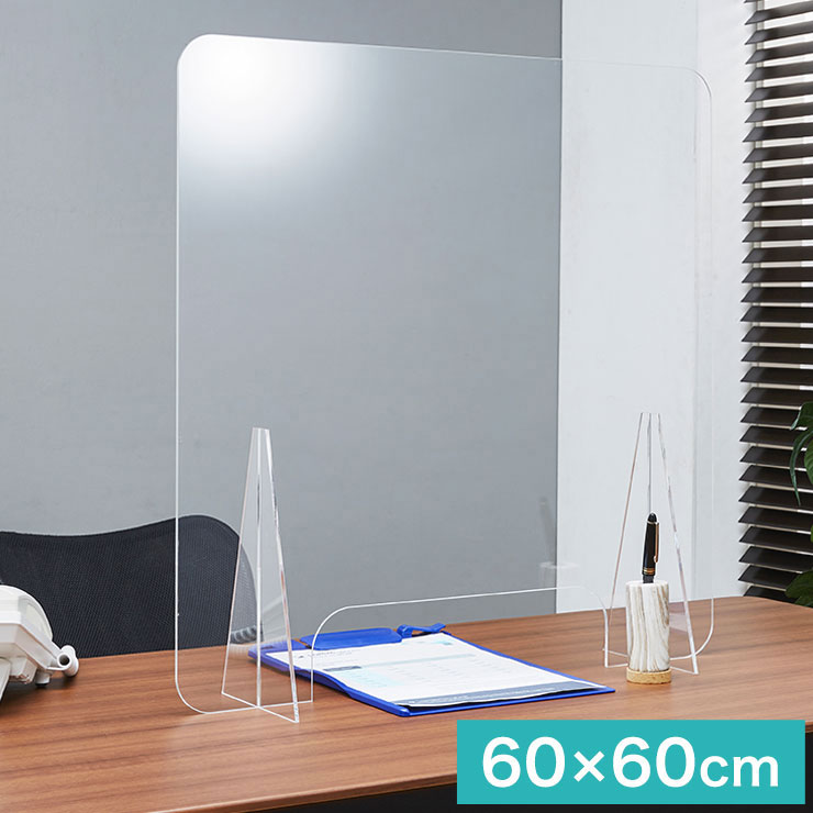 飛沫防止 パーテーション 60×60cm アクリルパーテーション クリア 間仕切り 仕切り自立 透明 衝立 スタンド2個付 飛沫 予防(代引不可)【送料無料】