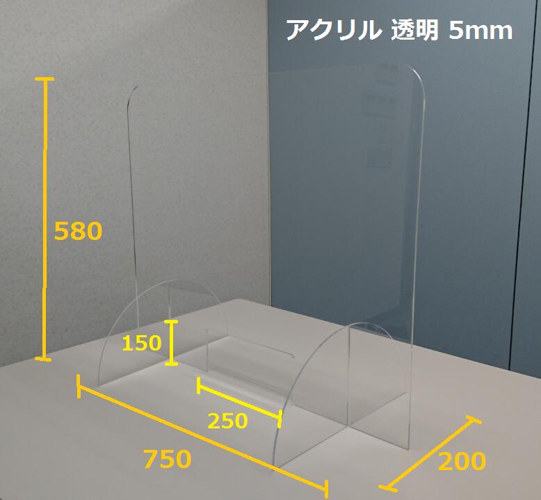 アクリル 飛沫防止パーテーション 台座付き W750×D200×H580 3mm 透明 クリア 措置商品 丈夫 デスク 間仕切り コロナ 対策 飛沫防止 卓上 ウイルス ガード 仕切り 感染防止 組立簡単 カウンター 工事不要 まん延防止 受付 レジ スクリーン