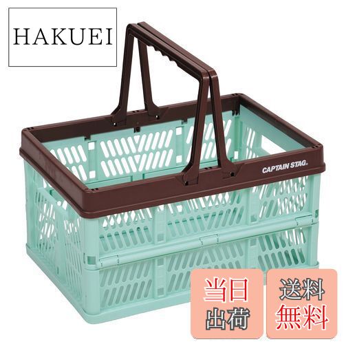 【送料無料】キャプテンスタッグ(CAPTAIN STAG) 折りたたみ コンテナ カゴ フォールディング ハンディ コンテナ 取っ手付き Lサイズ ミントグリーン CSシャルマン UL-1033