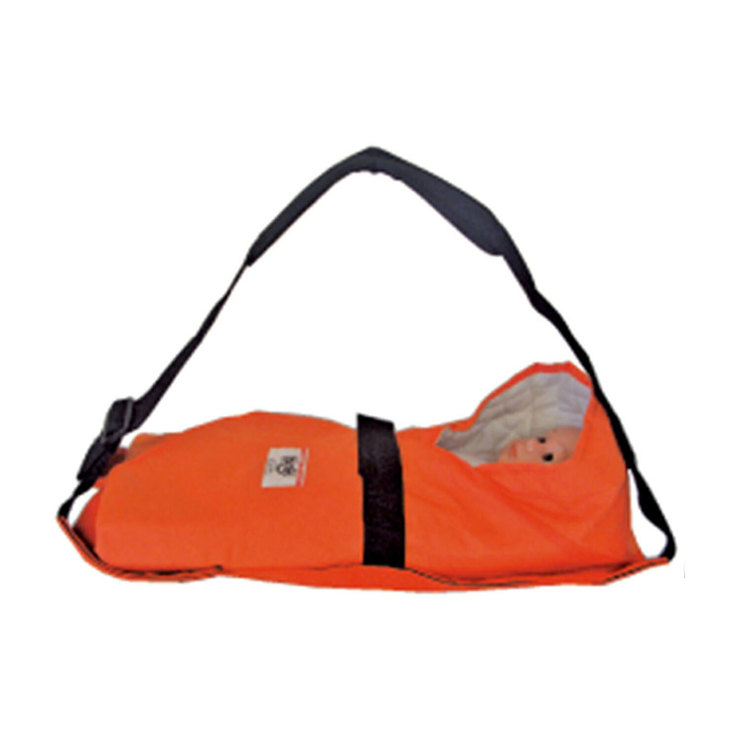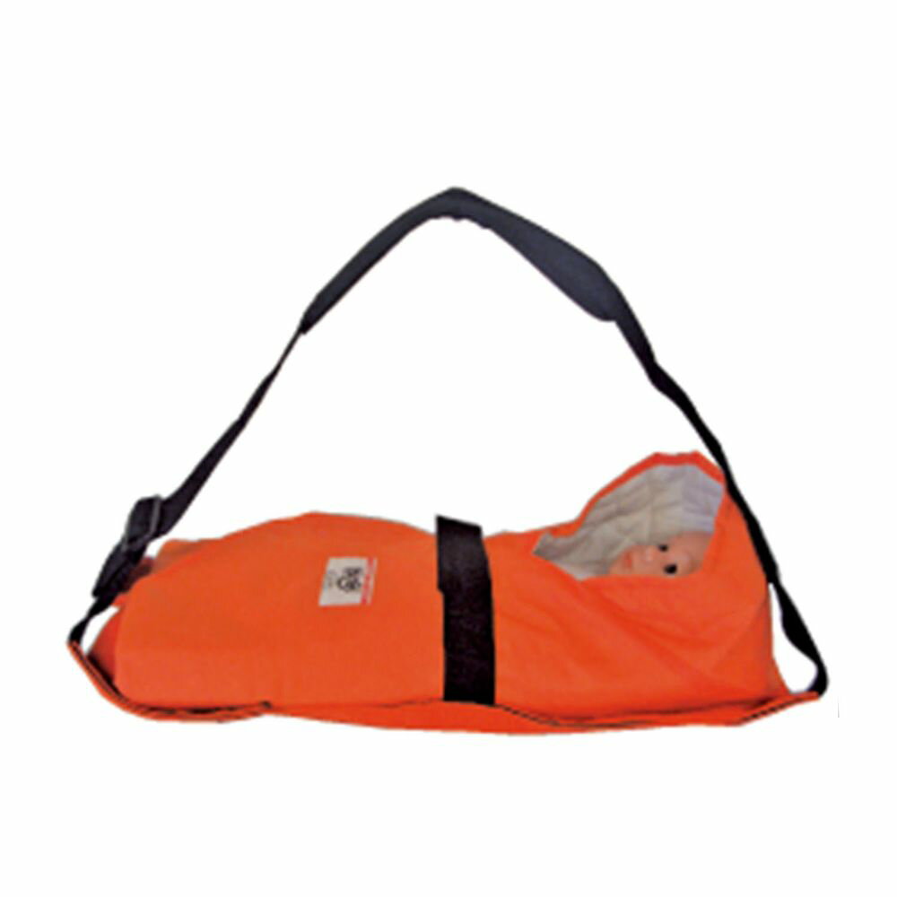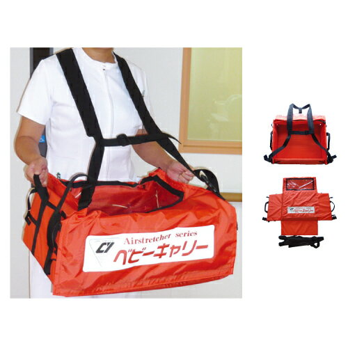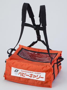 ベビーキャリー おくるみ エアーストレッチャーOKM-001●特殊プラスチック内蔵で、首の不安定な新生児の安全を考慮した設計です。●母親の胸部に固定して搬送するので温度が保て、体温管理ができます。●搬送時に両手が使える安全設計です。