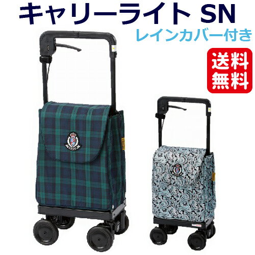 品名 キャリーライト SN サイズ 全幅36.5cm×全高(66.5〜86.5)cm×奥行23.5cm 収納時サイズ 全幅36.5cm×全高66.5cm×奥行36.5cm バッグ寸法 幅31cm×高さ39cm×奥行20cm 重量 2.6kg バッグ容量 約24.0L 材質 フレーム アルミ、プラスチック バッグ ポリエステル タイヤ 前輪11×後輪11cm カラー ペイズリーブルー、(タータングリーン※2021年2月上旬頃まで欠品中) 注意事項 1.この製品は、主として高齢者の方の外出用の製品で、自立歩行の出来ない方の使用には適しません。 2. この製品は、杖無しで歩行できる方がより安定して歩行できるよう補助的に使用するものです。