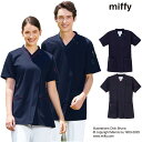 スクラブ白衣 肩口ポケットにmiffy刺繍 男女兼用 高い伸縮性と通気性、接触冷感機能のあるニット素材を使用 ネイビー+ターコイズ ネイビー+ピンク ナガイレーベン MFF5832【】