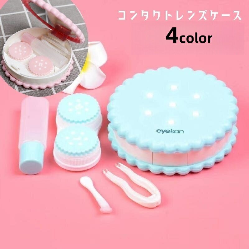 送料無料 コンタクトレンズケース コンタクトケース 携帯用 持ち運び ソフトレンズ用 クッキー型 保存液容器 ピンセット付き スポイト付き 鏡付き 洗浄液入れ ミラー コンタクトケア用品 カラコンケース コンパクト 旅行用 外出用 トラベル 出張 持ち歩き かわいい おしゃれ