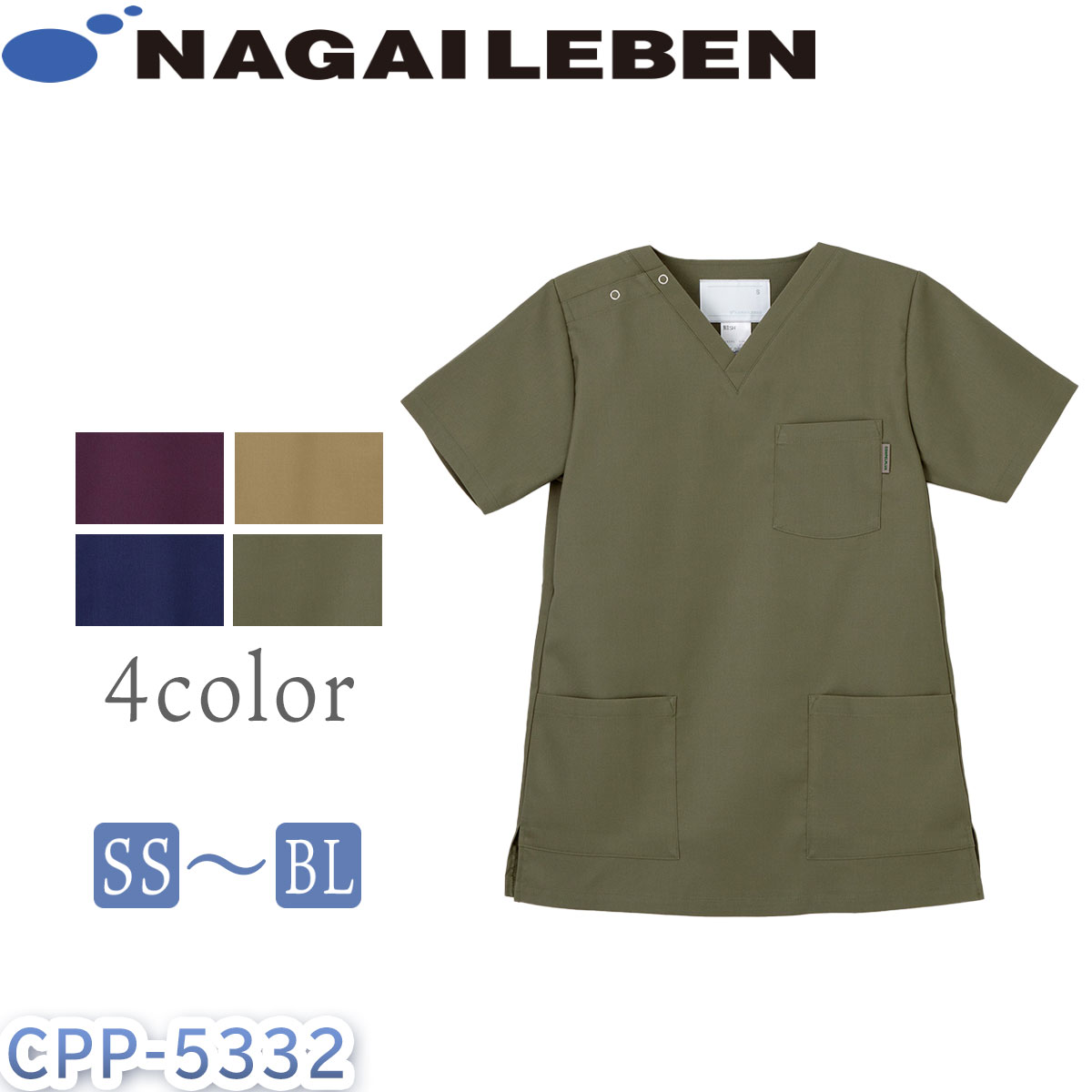 ナガイレーベン スクラブ 男女兼用 ユニセックス 医療用 メディカル CPP-5332 看護師 ナウェイ Naway COMPEL PLUS コンペルプラス NASOUL ナソル