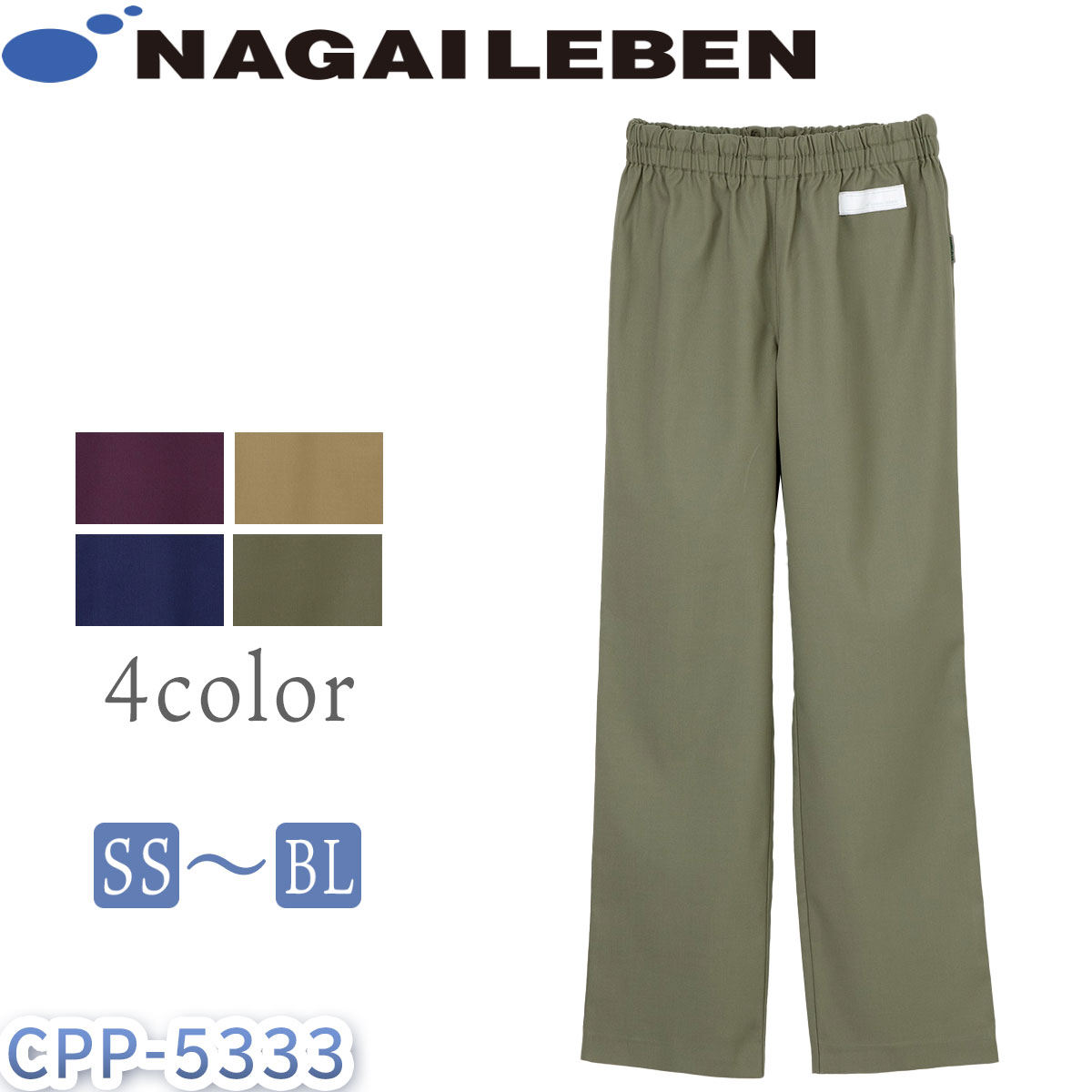 ナガイレーベン パンツ 裾上げ済み 総ゴム 男女兼用 ユニセックス 医療用 メディカル CPP-5333 看護師 ナウェイ Naway COMPEL PLUS コンペルプラス NASOUL ナソル