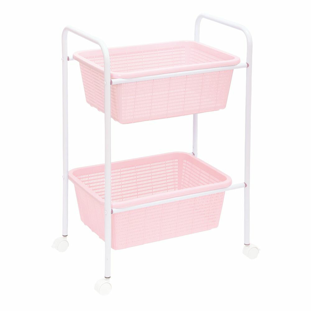 脱衣カゴワゴン・ラック2段式 ラベンダーピンク キャスター無し