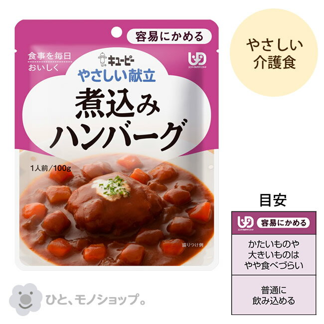 【4袋までコンパクト便】キユーピーやさしい献立 Y1-8 煮込みハンバーグ/18989 100g 介護食 高齢者 食事 おかず 惣菜 レトルト やわらかい 病人食 E1042