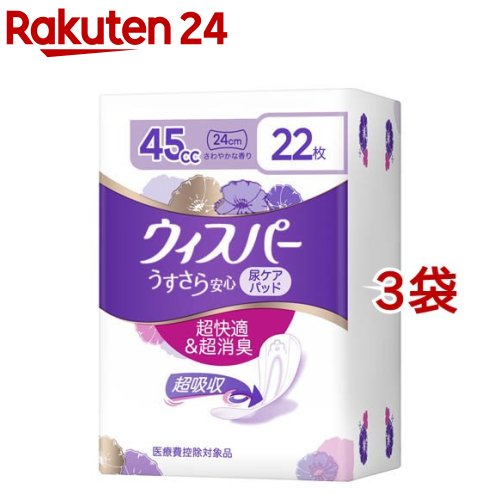 ウィスパー うすさら安心 45cc 女性用 吸水ケア(22枚入*3袋セット)【ウィスパー】