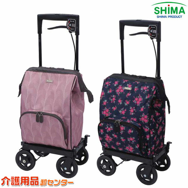 メロディ プリモ グランデ コンビニでの買い物に便利 ショッピングカート 右用 左用 リーフピンク フローラルNB 島製作所 【500461】 介護 外出 歩行 転倒予防 カート ショッピングカート カイヤーカート 買い物