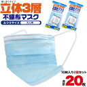 20枚【 即納 】【 在庫あり 】【 領収書発行可能 】 立体 3層 不織布 マスク 普通 サイズ ( 大人用 ) 使い捨て ● ふつうサイズ 男女兼用 男性用 女性用 プリーツ 飛沫 花粉 ウイルス 対策 花粉症 感染予防 青色 ノーズワイヤー
