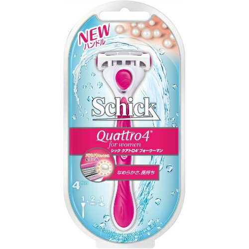 ボディケア(\)脱毛・脱色・除毛シック クアトロ4 フォーウーマン ホルダー 替刃2個付なめらかさ長持ちのスムーザーがお肌にフィットする女性用シェーバーホルダーです。4枚刃で剃り残しをなくします。アロエ配合のスムーザーとWビタミン(E・B5)配合のガードバーがお肌にやさしく、なめらかな仕上がりを実現。セーフティワイヤーがお肌に刃があたるのを最小限に抑え、お肌への負担を減らします。小回りのきく首振りヘッドが身体の微妙なカーブにぴったりフィットします。 ご注意:●カミソリは刃物です。お取り扱いにはご注意:願います。●替刃の刃の部分には直接手を触れないでください。また、落としたり、強い衝撃を与えないでください。これらは、刃こぼれの原因となり、肌を痛めるおそれがあります。●カミソリを落とした場合は、替刃を交換してください。●小さなお子様の手の届かないところに保管してください。●お肌に強く押し当てると傷をつける原因となります。すねやひじなどの骨張っているところは、特に軽いタッチでご使用ください。 原産国:替刃/ドイツ製、ホルダー/中国製 販売_製造元: シック・ジャパンブランド:クアトロ4JAN:6937266700624広告文責:アットライフ株式会社TEL 050-3196-1510※商品パッケージは変更の場合あり。メーカー欠品または完売の際、キャンセルをお願いすることがあります。ご了承ください。