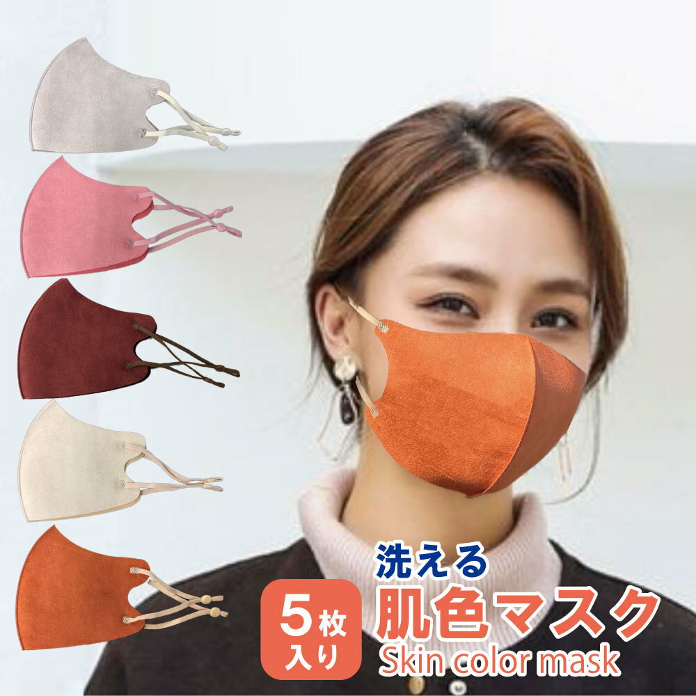 洗える 血色マスク おしゃれなマスク 秋冬用マスク ベージュ ブラウン こげ茶 ピンク グレー 耳紐アジャスター付き かわいいマスク 5枚セット プレゼント有り 送料無料 個別包装 ネコポス発送