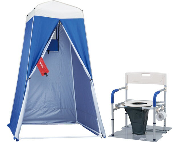 ●サイズ/トイレ:幅67×奥行75×高さ79〜86.5(4段階)cm・便座高:40〜47.5cm(4段階)・手すり内幅:54cm、テント:幅120×奥行120×高さ200cm●対応マンホール内径/20〜60cm●重さ/トイレ:13.5kg、テント:6kg●材質/(トイレ)プレート:スチール(シルバー粉体塗装)・フレーム:アルミ(手すり握り部発泡ゴム)・便座・背もたれ:ポリエチレン、(テント布地)屋根:ポリエステル150D・PU防水加工・サイド:ポリエステル150D・シルバーコーティング加工・フレーム:スチール(白色粉体塗装) ・かんたんに組立、汚水マンホールの上に設置し、直接汚物を流す洋式タイプのマンホールトイレです。ご高齢の方などにも使いやすい、立ち座りをサポートする手すり・背もたれ付き。・手すり内幅54cmのゆったりタイプ。様々な体格の方が使用する避難所などにおすすめ。・マンホールが使用できない場合、スリーブを付属のネットに付け替え、汚物処理袋(トイレ袋)をセットすると、簡易トイレとして使用できます(トイレ袋は市販品を別途ご用意ください)。・一番下を除く、上4ヶ所の穴を利用して2.5cmずつ高さ調節できます。便座を高めに設置し立ち座りしやすくするなどの使い方もできます。・本体は折りたたみ式でコンパクトに収納できます。・工具不要で組立かんたん。 【イーストアイ】