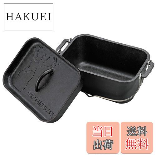 【送料無料】キャプテンスタッグ(CAPTAIN STAG) ダッチオーブン 鉄鋳物 角型 ダッチオーブン 25cm 満水容量4.6L シーズニング不要 UG-3071 ブラック