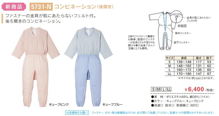 【コンビネーション(後開き)】【S・M・L・LL/カラーをお選びください】5731-N・メディカルグッズ・部屋着・室内着・介護着・パジャマ・院内着・介護用パジャマ・介護用コンビネーション