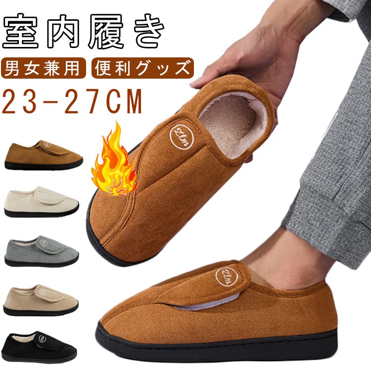 スリッポン 面ファスナー レディース メンズ 介護シューズ ケアシューズ 裏起毛 ルームシューズ 冬用 もこもこ 暖かい 裏ボア 介護靴 室内履き 防寒ブーツ お年寄りシューズ 歩きやすい 痛くない 高齢者 外反母趾 リハビリシューズ 室外 23-27cm