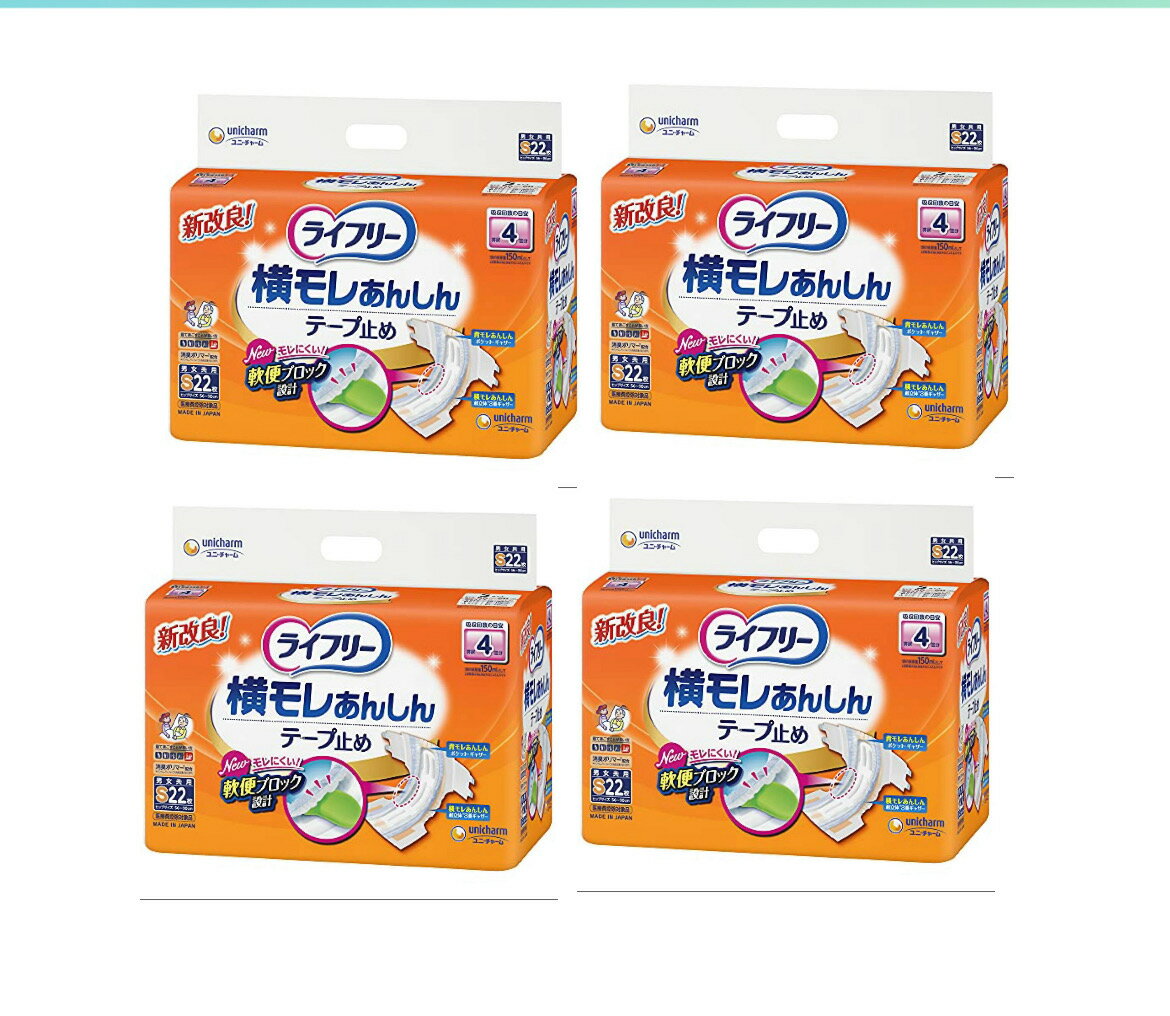 ライフリー 横モレあんしんテープ止めおむつ Sサイズ 22枚×4袋 大人用おむつ 4回吸収 ユニチャーム 消臭 通気性 紙パンツ 紙オムツ 紙おむつ 介護用品 オムツテープタイプ 【寝て過ごすことが多い方】 失禁用品 (計88枚 ケース販売)