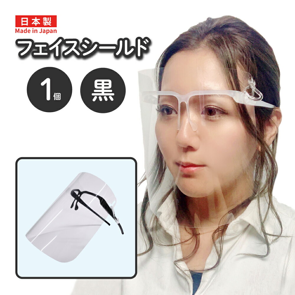 【クリックポスト対応】フック付フェイスシールド フレーム色 黒 1個入り 軽量 高透明 曇り止め 口元 食事 熱中症 手話