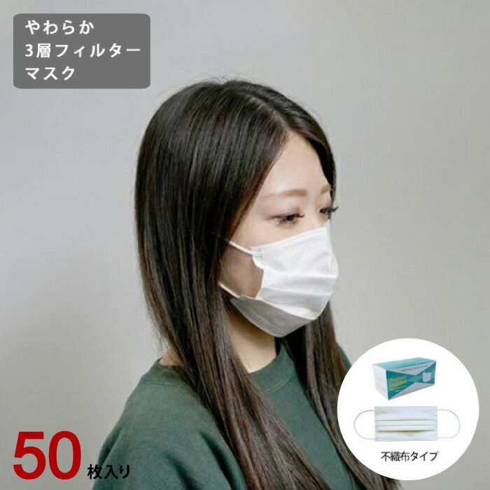 【スーパーSALE10%OFF】マスク 50枚 送料無料 不織布 使い捨て 大人用 箱入り 在庫あり 国内発送 ホワイト プリーツ やわらか3層 フィルターマスク ノーズフィッター付き アデペシュ
