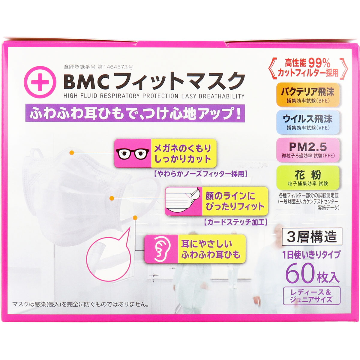 【今だけお得!数量限定セール】ビー・エム・シー BMC フィットマスク 60枚入 レディース&ジュニア(14.5×9cm)(4580116956393)◇