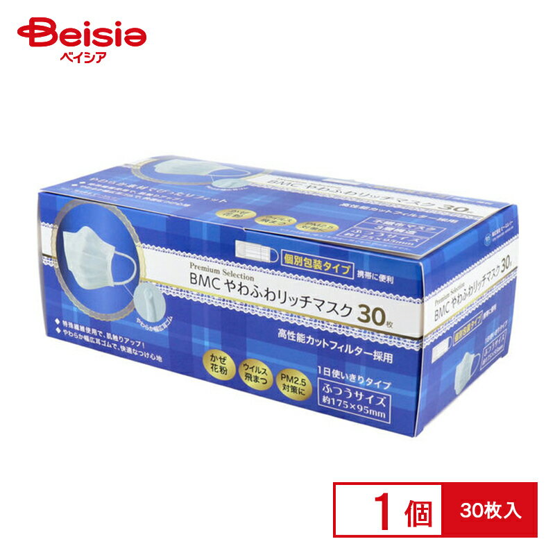 ビー・エム・シー BMCやわふわリッチマスク ふつうサイズ 個包装タイプ 30枚 379255