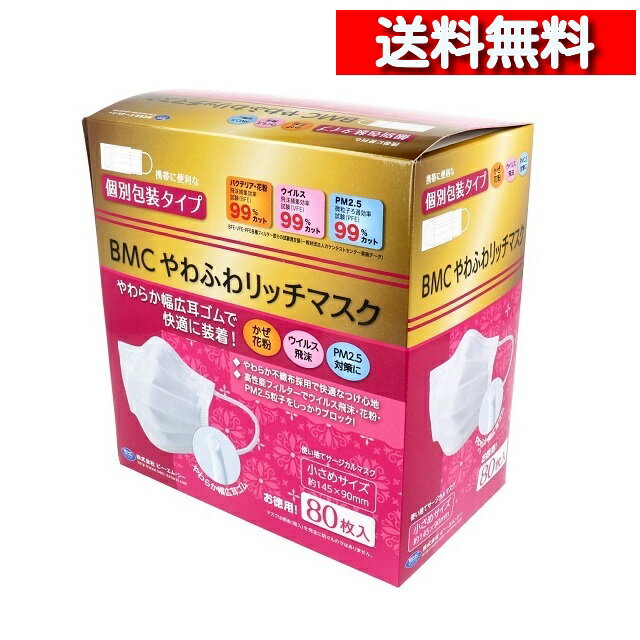 [ 単品 送料込 ] BMC やわふわリッチマスク 小さめ 個別包装 80枚 [4580116956072] bmcマスク ビー・エム・シー 耳が痛くない ノーズワイヤー ウイルス 飛沫対策