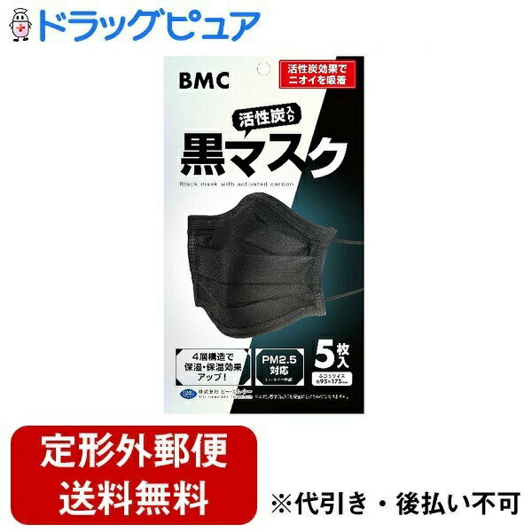 【本日楽天ポイント4倍相当】【定形外郵便で送料無料でお届け】株式会社ビー・エム・シー活性炭入り黒マスク 5枚入【TK180】