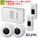 【平日15時まで即日出荷】4か所呼び出し+2か所受信セット(受信機2台+送信機2台+防水型送信機2台)ELPAワイヤレスチャイム受信器ランプ(EWS-P52)2台+押しボタン(EWS-P30)2台+防水押しボタン送信機(EWS-P32)2台セット【呼び出しベル 介護 呼び鈴 コードレス 朝日電器】