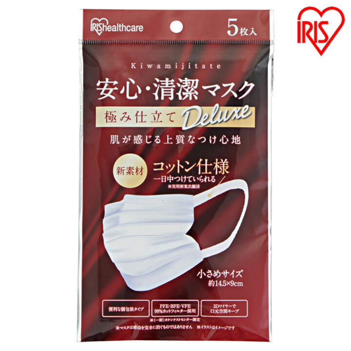 マスク 安心・清潔マスク 極み仕立て Deluxe 小さめサイズ PK-FAS5S個包装 PM2.5対策 花粉対策 カゼ予防 ほこり プリーツ アイリスオーヤマ[※kaku]