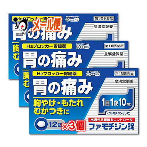 【第1類医薬品】【送料無料!メール便!】ファモチジン錠クニヒロ 12錠 ×3個セット H2ブロッカー薬【皇漢堂】薬剤師の確認後の発送となります。何卒ご了承ください。※セルフメディケーション税制対象商品